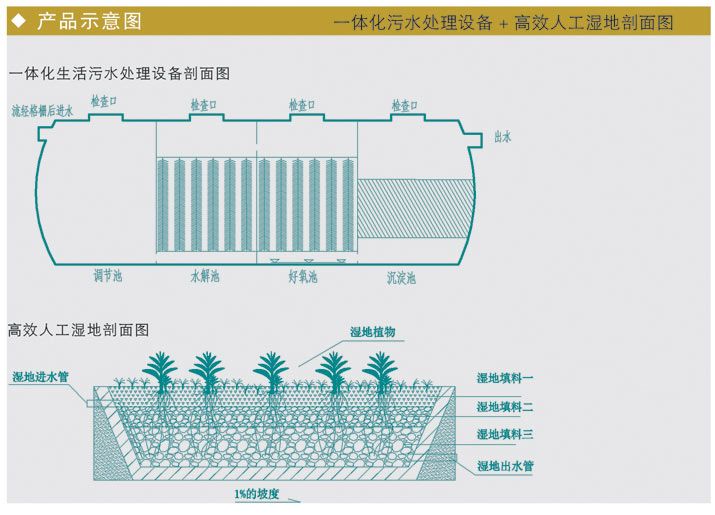 小型集聚點、村落、小學等小水量污水處理項目,根據(jù)進出水水質要求可搭配無動力和微動力預處理模塊設備,在與人工濕地模塊設備組合達到要求的排放標準。
